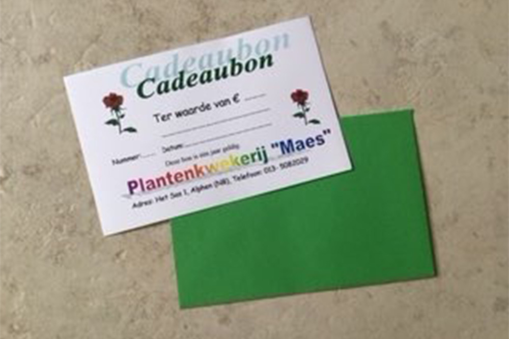 Ben je benieuwd waarvoor je nog meer terecht kunt bij Plantenkwekerij Maes in Alphen? Klik op één van de panels hieronder voor meer informatie over onze werkwijze, onze eigen cadeaubon of volg ons en blijf op de hoogte van interessante items zoals onze cadeaubon of actuele acties en aanbiedingen!